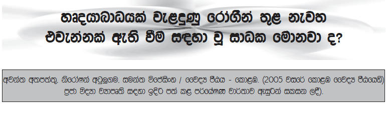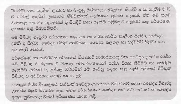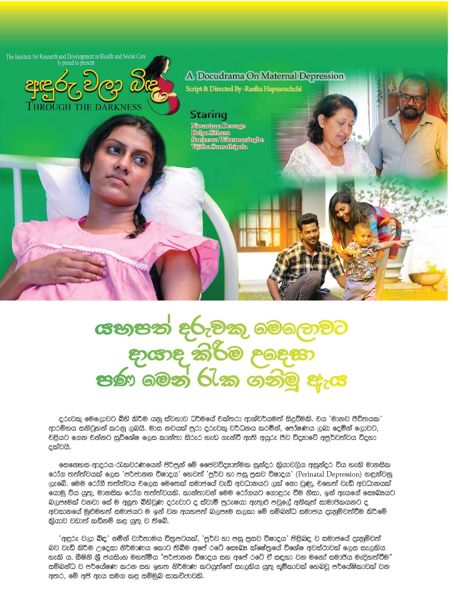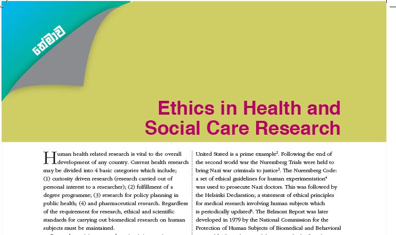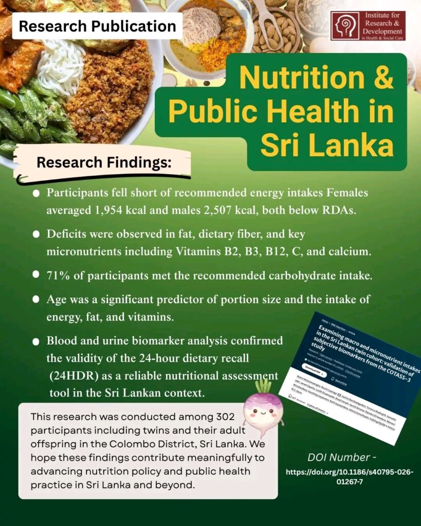 Institute for Research & Development - in Health & Social Care No.393/3, Lily Avenue, Off Robert Gunawardane Mawatha, Battaramulla 10120, Sri Lanka.
