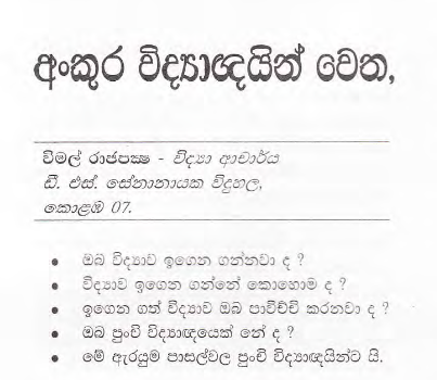 පහේ ශිෂ්යත්ව ගැන දෙමව්පියන් සැලකිලිමත් විය යුත්තේ ඇයි?