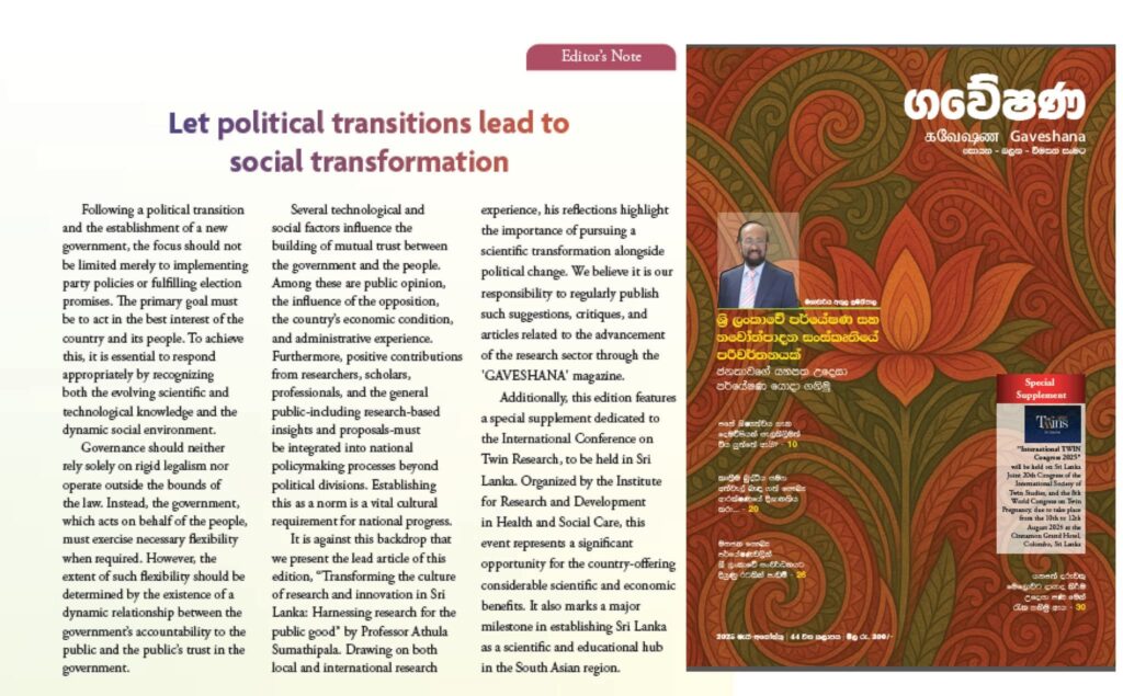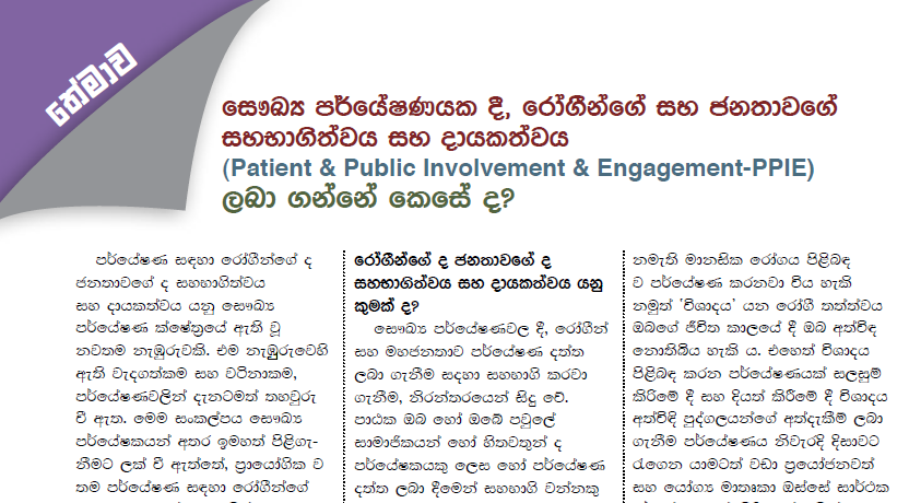 ජනතාවගේ යහපත උදෙසා පර්යේෂණ යොදා ගනිමු